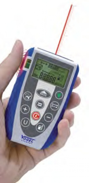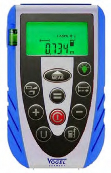 Das Gerät misst Entfernungen und berechnet Fläche und Volumen.