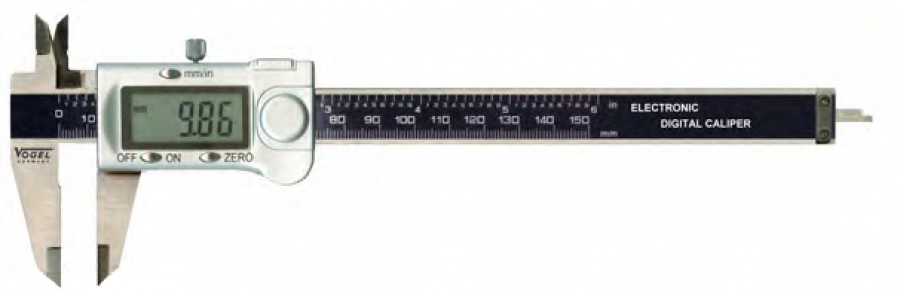 Elektr. Digital Messschieber150x0,01 mm/6x0.0005", RS 232Cein/aus Schalter, CE, Batterie, Anleitung, im Kunststoffkasten