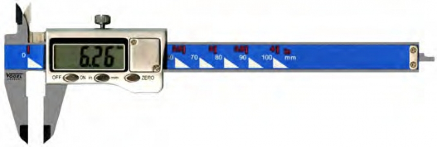 Digital Messschieber,Metallge.100x0,01mm / 4x0,0005", CE flaches Tiefenmaß,ohne Datenausgang SR44 1,5V,ohne Daumenrolle Anleitung,im Kasten