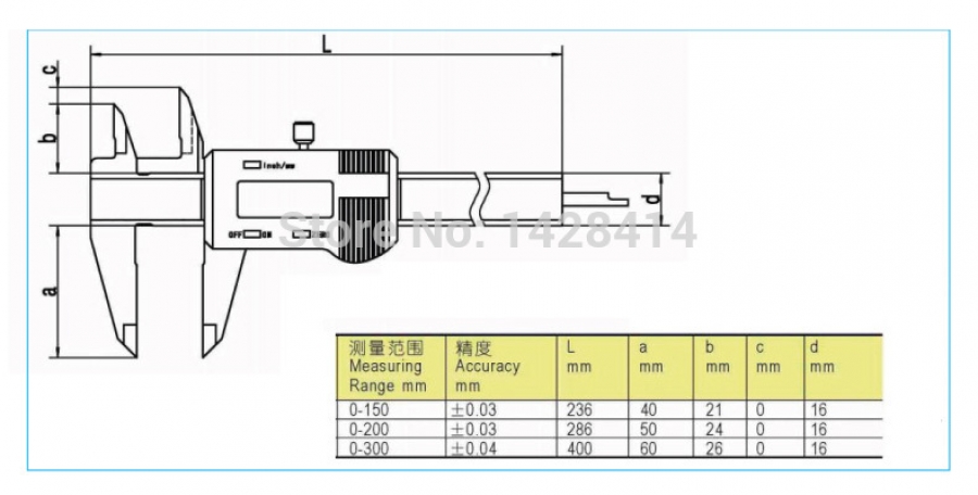 0-200 mm, Anschlagseiten der Messspitzen in gleiche Richtung zeigend, umschaltbar mm/inch