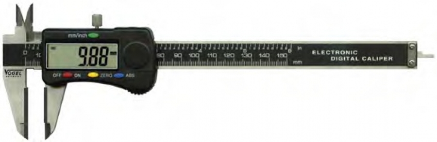 Elektr. Digital Messschieber150x0,01 mm/6x0.0005", RS 232Cmit HM-Messflächen, ein/aus Schalter, CE, Batterie, Anleitung, im Kunststoffkasten