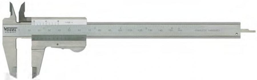 Taschenmessschieber,Momentk.150mm/6", 0,05mm-1/128"flaches Tiefenmaß, DIN 862 rostfrei,gehärtet, matt verchromt,im Etui