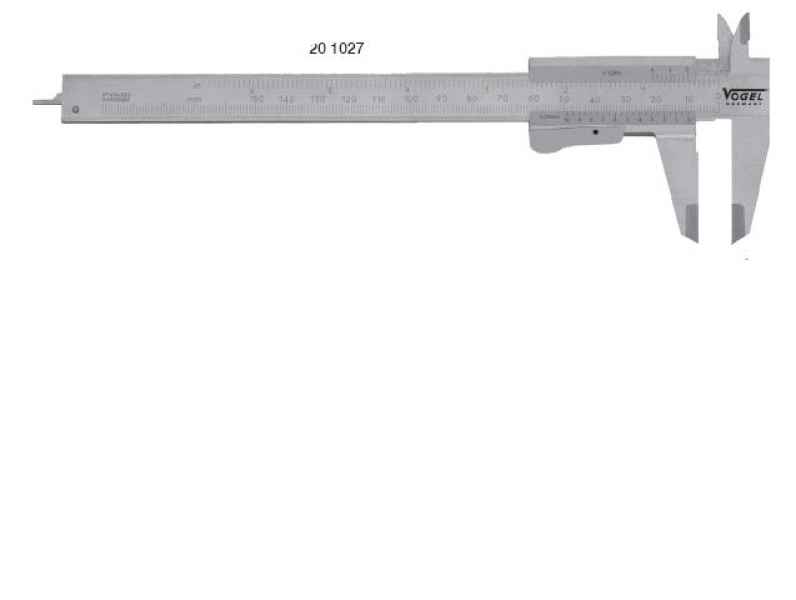 Taschenmessschieber, 200 mm/8"0.05mm/1/128", für Linkshändermit Momentklemmung, DIN 862, inox, matt-verchromte Skala, flaches Tiefenmass, im Etui