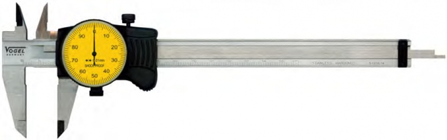 Uhr - Messschieber, DIN 862 200mm x0,01mm,stoß u.staubge.rostfrei, gehärtet, flaches TiefenmaßAbbrechen inkl.Werks-Kalibrierzertifikat in Kunststoffbox