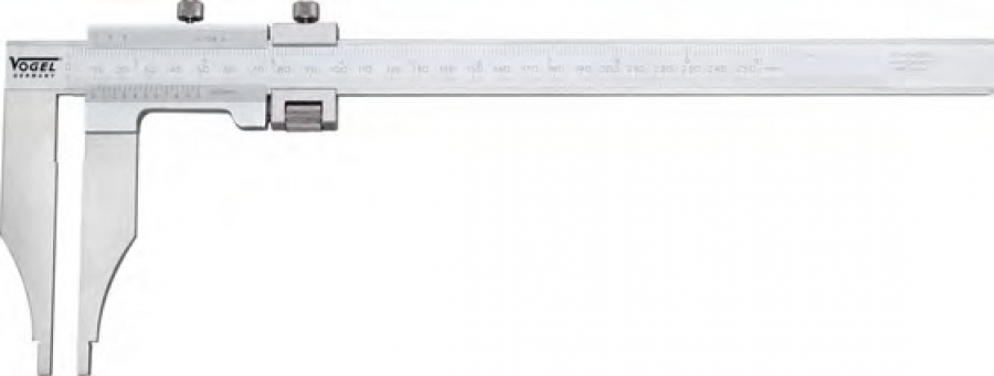 Präz. Werkstattmessschieber800mm/200mm x 0,05 mm NoniusTeilung mm/inch, o.Spitzen, m. Feineinstellung, rostfrei, verchromte Skala, gehärtet, DIN 862, im Holzetui
